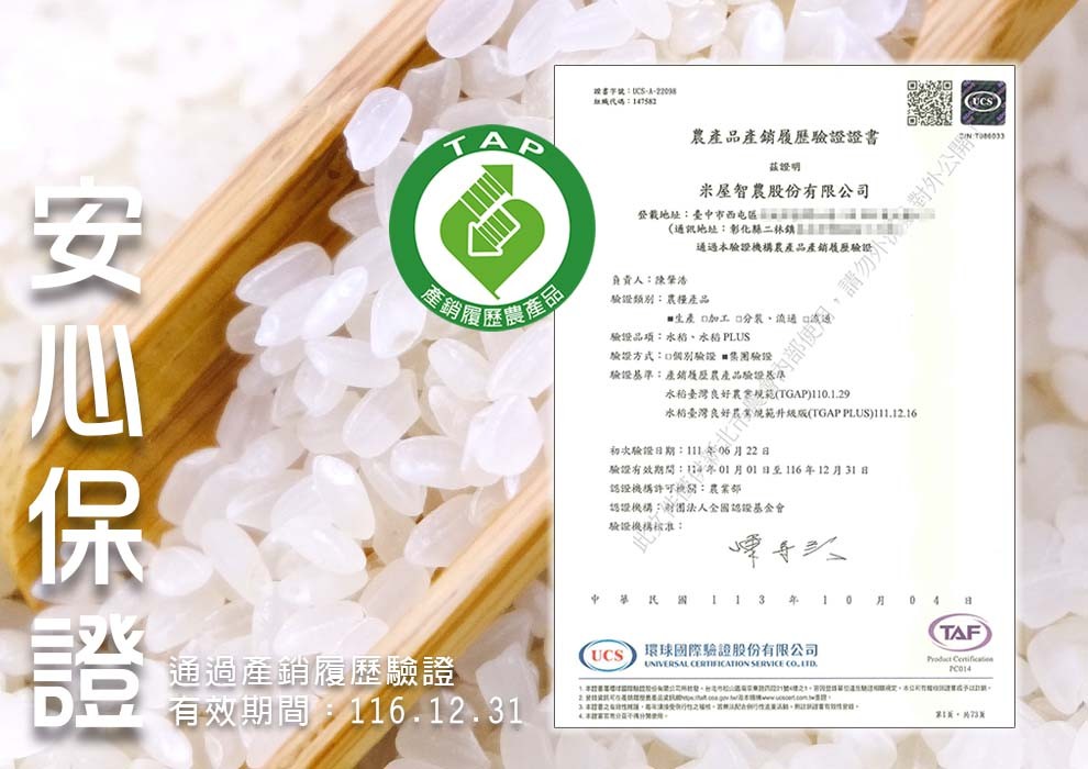 - 產銷履歷證書字號:UCS-A-220098