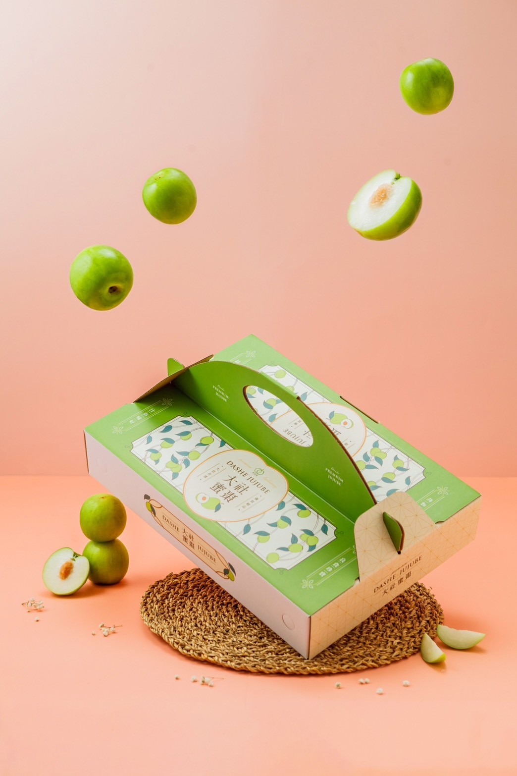 本季品種:珍蜜蜜棗(年後):年後才進入產季的珍蜜蜜棗,果皮外會有些微泛黃的粗糙感,但水分多!加上超甜脆口感,爽脆多汁的蜜棗於年節期間盛產,故又稱為「團圓果」,棗子富含維生素C、B1及B2,尤其維生素C,是蘋果的20倍,堪稱為「維生素C果」。