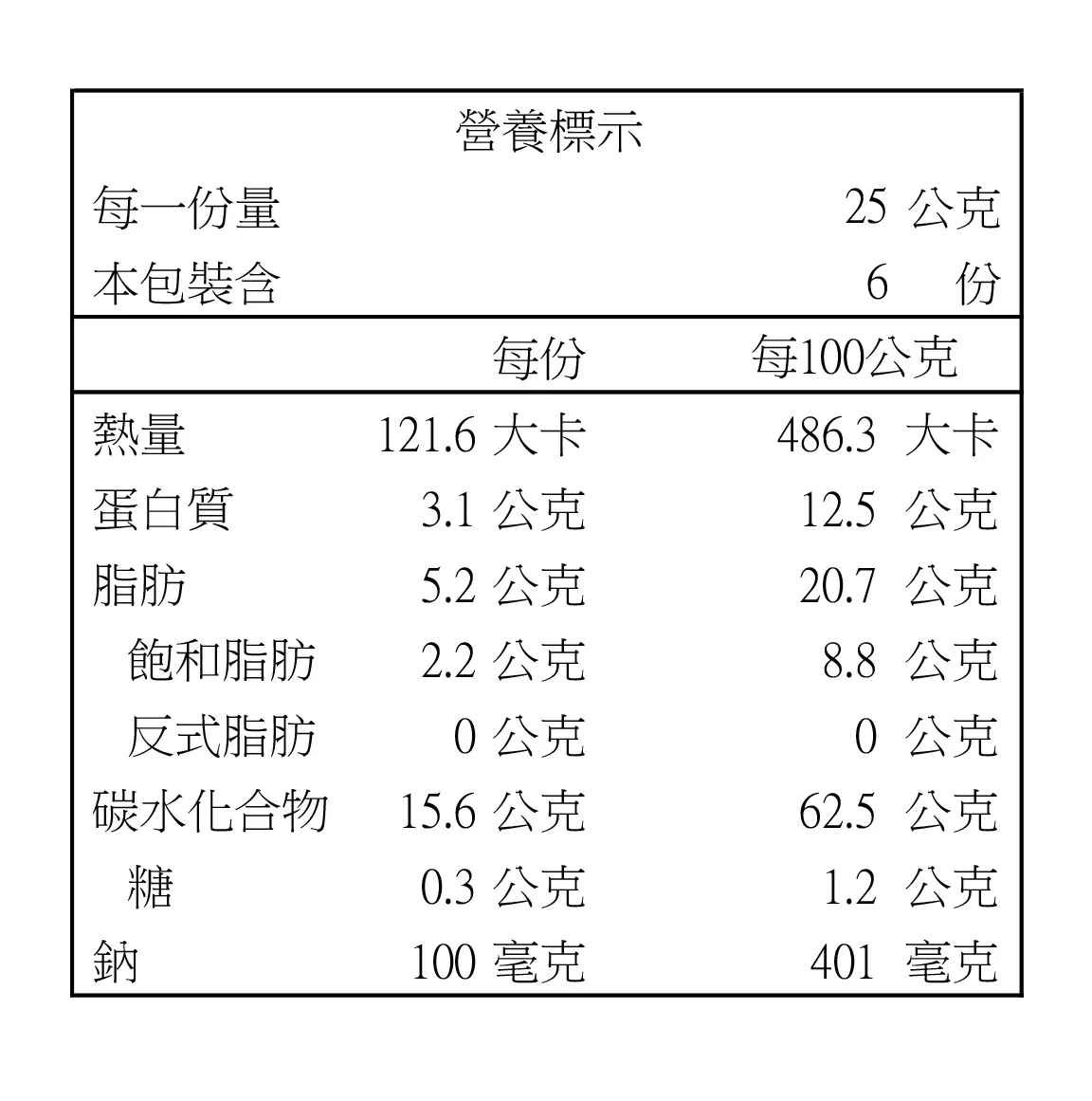 淨重:150g(25gx6入)