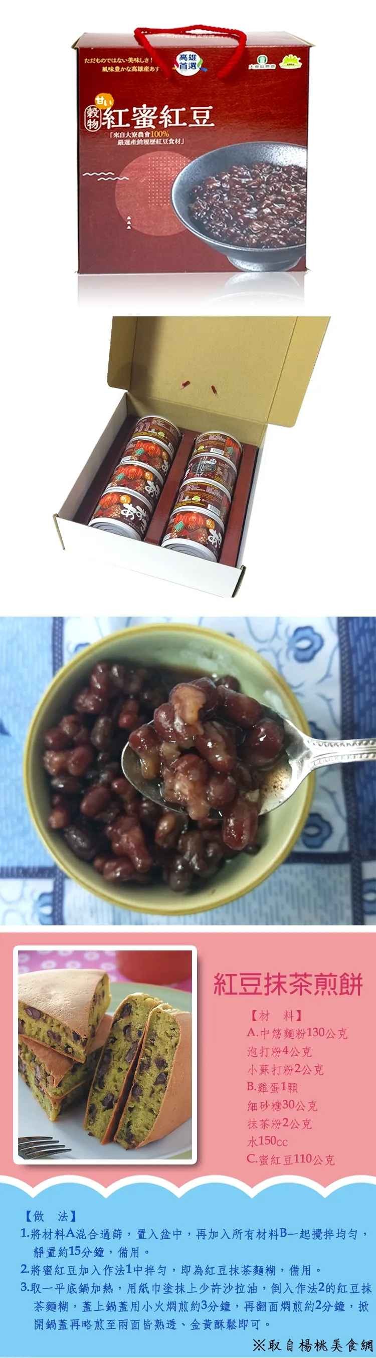 紅豆富含豐富蛋白質與維生素以及豐富的鐵質,想吃不必辛苦用瓦斯爐及耗費時間煮,大寮蜜紅豆就是您的好夥伴,打開即食,還可以搭配各種吃法,輕鬆就能吃到美味的紅豆,禮盒包裝送禮自用皆相宜