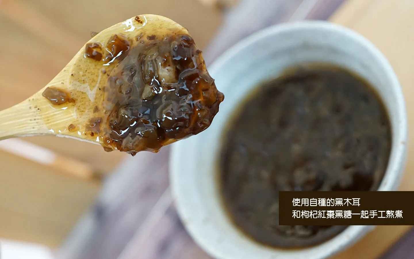 添丁養生黑木耳露使用自家種植黑木耳與和枸杞紅棗黑糖一起手工熬煮,無其他添加物,成份單純,讓你安心食用。