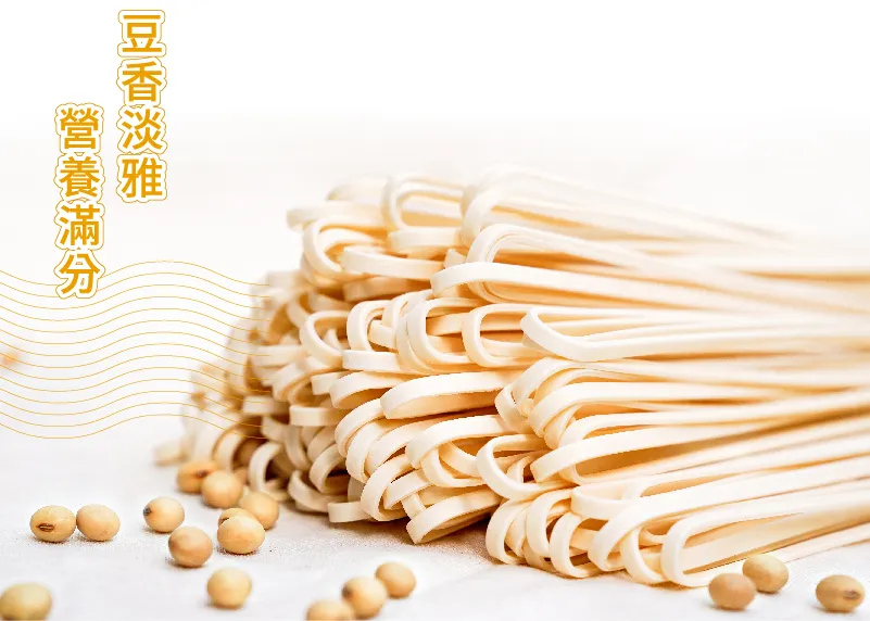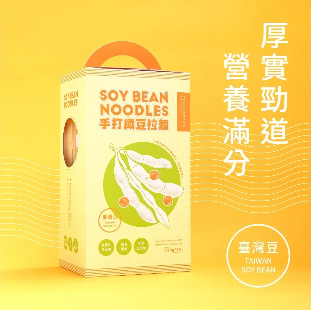 嚴選在地小農栽種、粒粒飽滿的臺灣大豆,整顆新鮮研磨,100%完美封存優質的植物性蛋白質與膳食纖維!並以獨特創新的製麵技術,打造出不易斷裂、厚實有嚼勁的麵條,無食品添加劑的安心製程,讓你與家人享用最天然的營養美味。