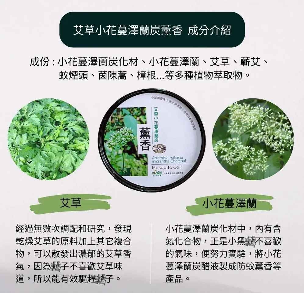 【成分】艾草鮮蔬粉、小花蔓澤蘭粉、蘄艾、香茅粉、香茅精油、楠木粉