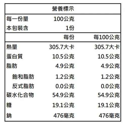 成份:高筋麵粉、國產鹽滷豆腐、細砂糖(蔗糖)、低筋麵粉、雞蛋、黑芝麻、香辣椒鹽粉、鹽