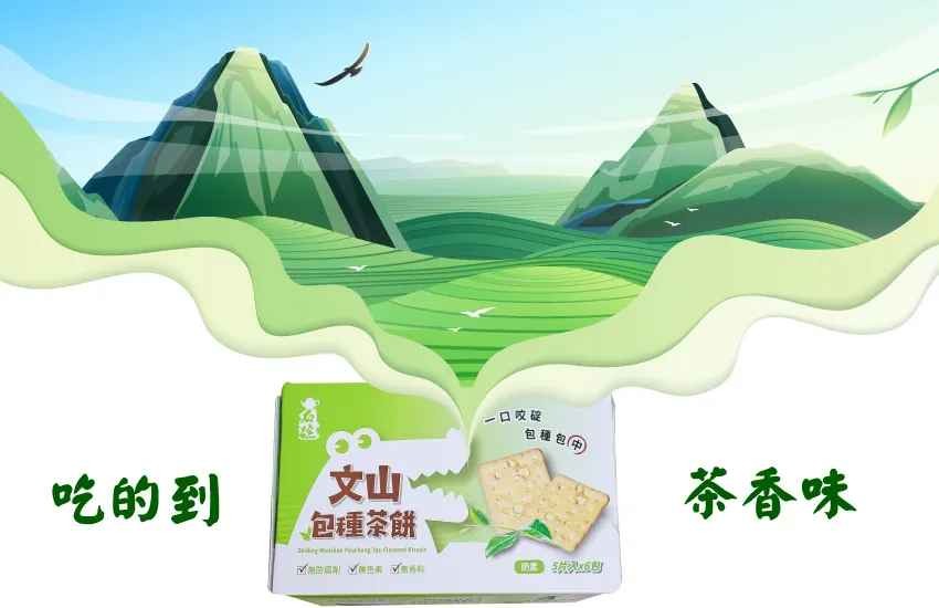 選用包種茶粉研磨,一咬下去口裡溢滿茶香