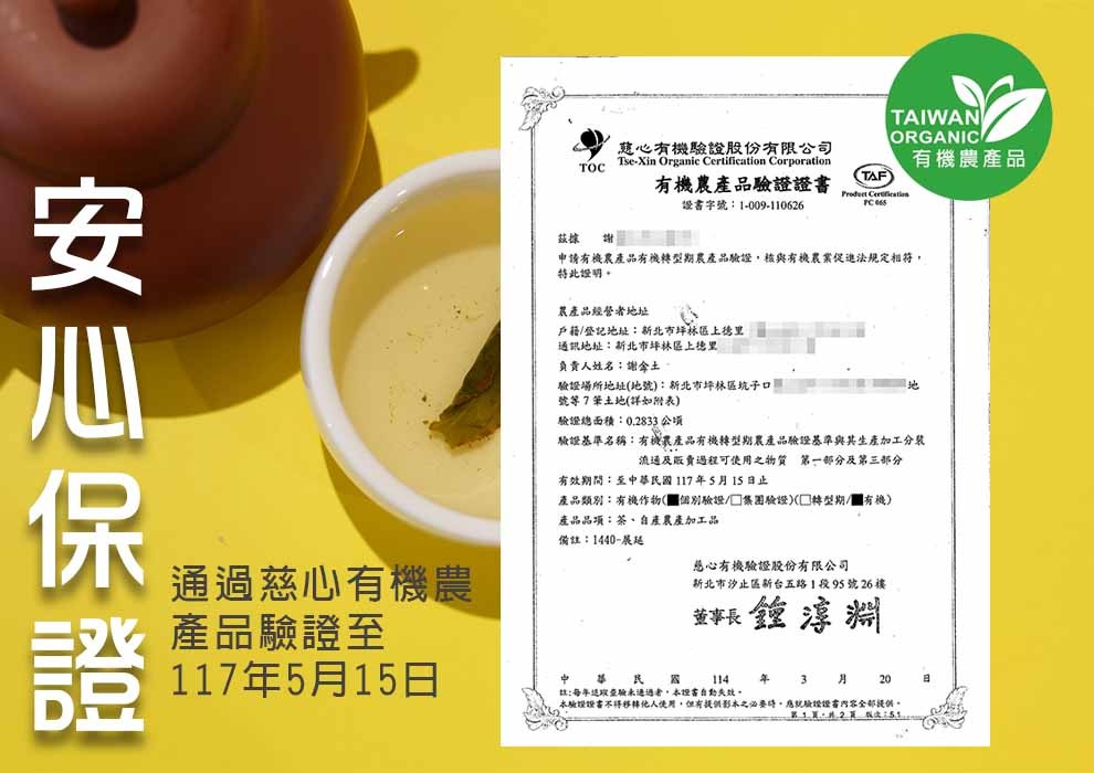 驗證機構名稱:慈心有有機驗證股份有限公司