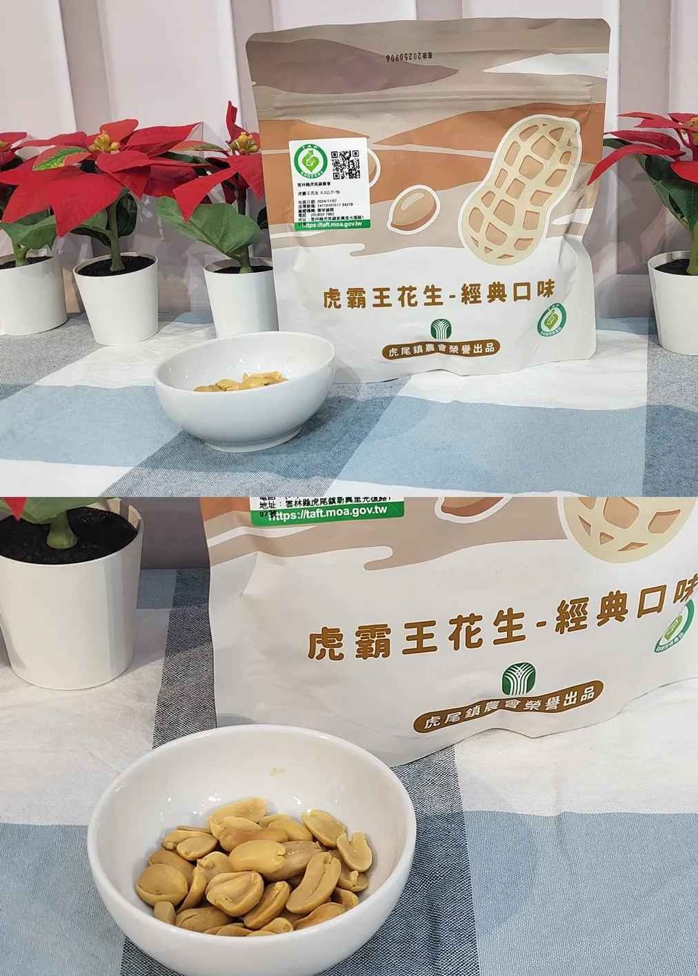 虎霸王花生分享包,結合國產台農14號花生,粒粒飽滿,特色是油脂香、營養豐富、花生仁扎實,以專業技術培育的種苗來穩定品質,每一粒皆經嚴格把關。花生的香脆滋味,越吃越涮嘴,讓您一口接一口,是聊天、泡茶、追劇必備的休閒零嘴,更是閒暇時解饞的小點心唷!