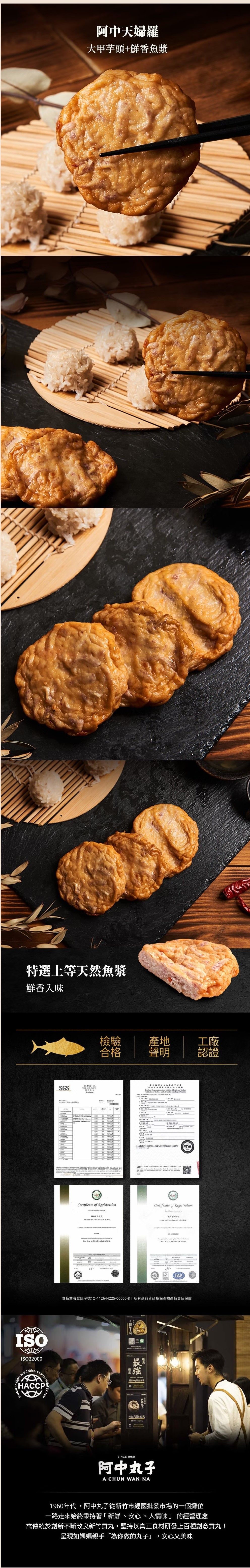 嚴選SA特級魚漿,以60年傳承新竹貢丸匠技研製,魚漿包裹大甲芋頭絲,Q彈口感中透著綿柔香甜,作為關東煮或炸物都很適合。