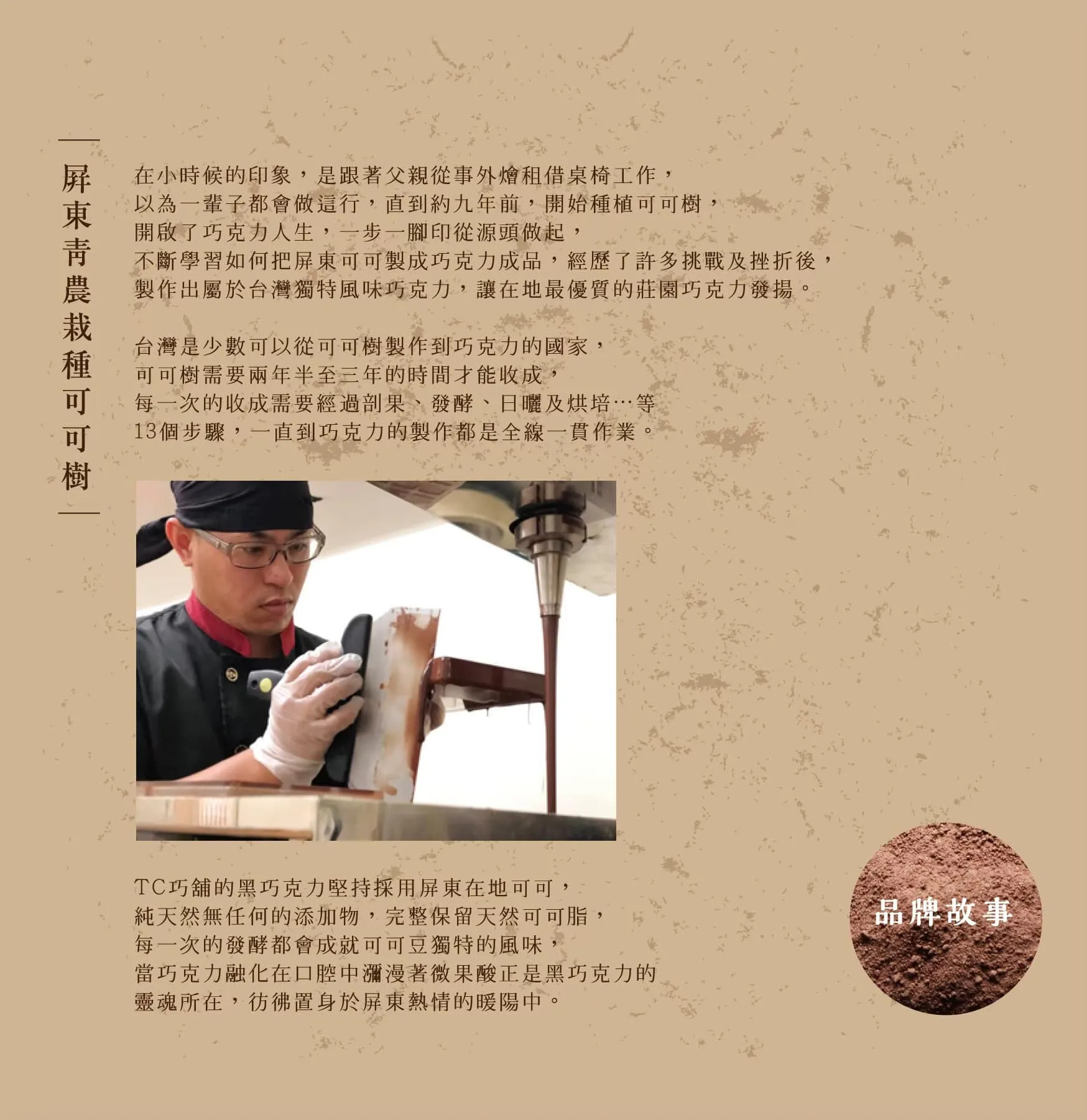 手工精挑出僅僅只有「3%」比例的特A級可可果,使用特殊工法進行發酵,大幅降低乳酸菌及醋酸菌帶來的酸氣,使發酵後的巧克⼒,帶有類似⽇本清酒的高雅風味。