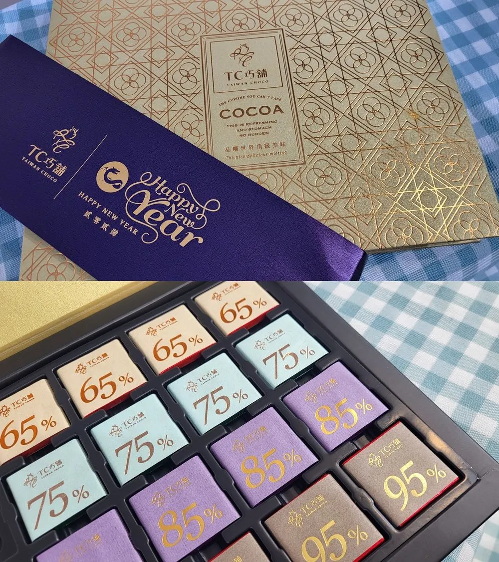 內容:禮盒提供65%、75%、85%、95%黑巧克力各5片