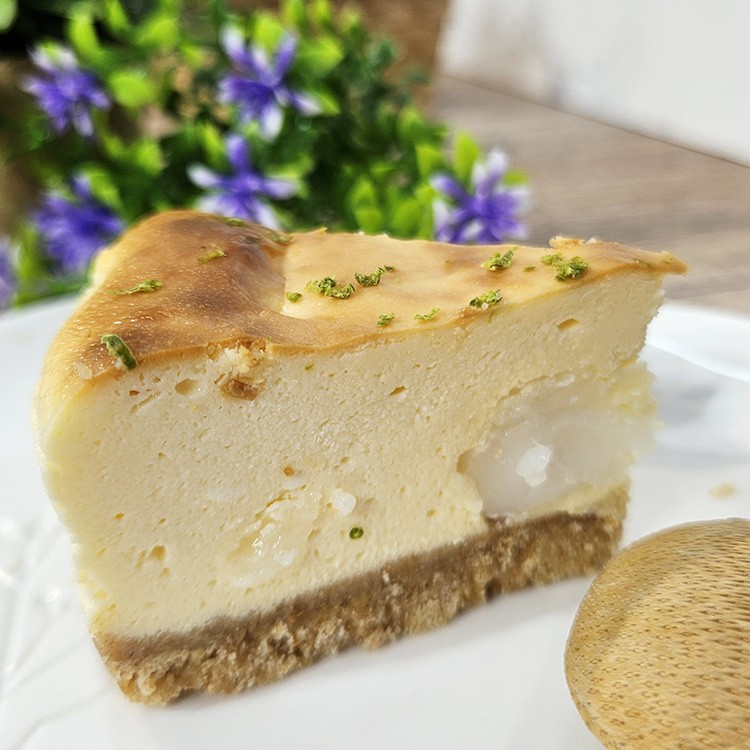 檸檬麻糬,以招牌的重乳酪蛋糕以濃郁乳酪為基底,加入天然檸檬的香氣與酸味,與奶香完美融合,讓起司的濃厚層次中多了一抹清新的檸檬香,口感濃而不膩,另Q彈麻糬更是讓蛋糕有不同口感,令人回味。