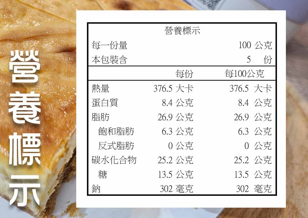 過敏原:本產品含有蛋,乳酪,不適合其過敏體質者食用