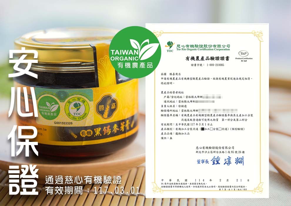 ●有機驗證字號:TOC-P0120