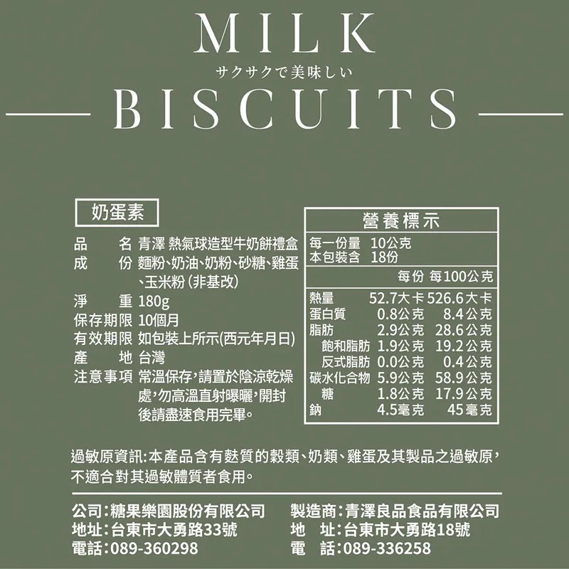 產品名稱:【台東青澤】熱氣球造型牛奶餅禮盒