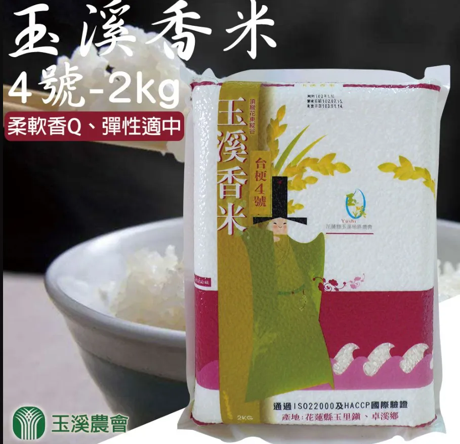 商品品名:【玉溪農會】玉溪米台梗四號2包(2kg-包)