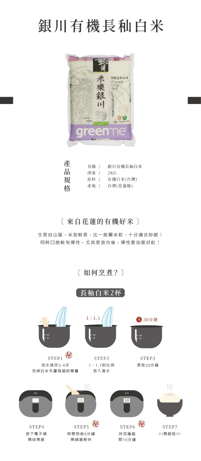 品名 : 銀川-有機長秈白米