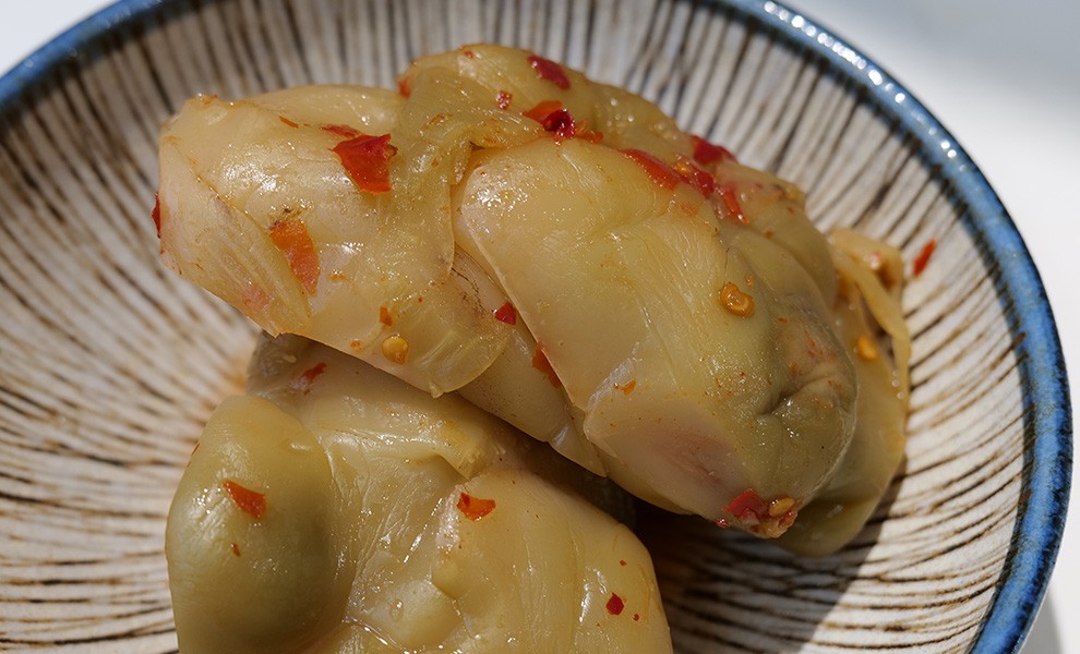 榨菜的國度~麥寮,麥寮101榨菜選用桃改場的五峰種,莖瘤塊粗大、瘤形橢圓、 表皮淡綠色、瘤肉呈淡白色