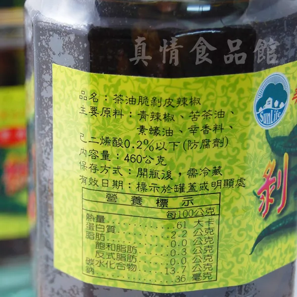 內容物名稱(成分):青辣椒、苦茶油、素蠔油、辛香料