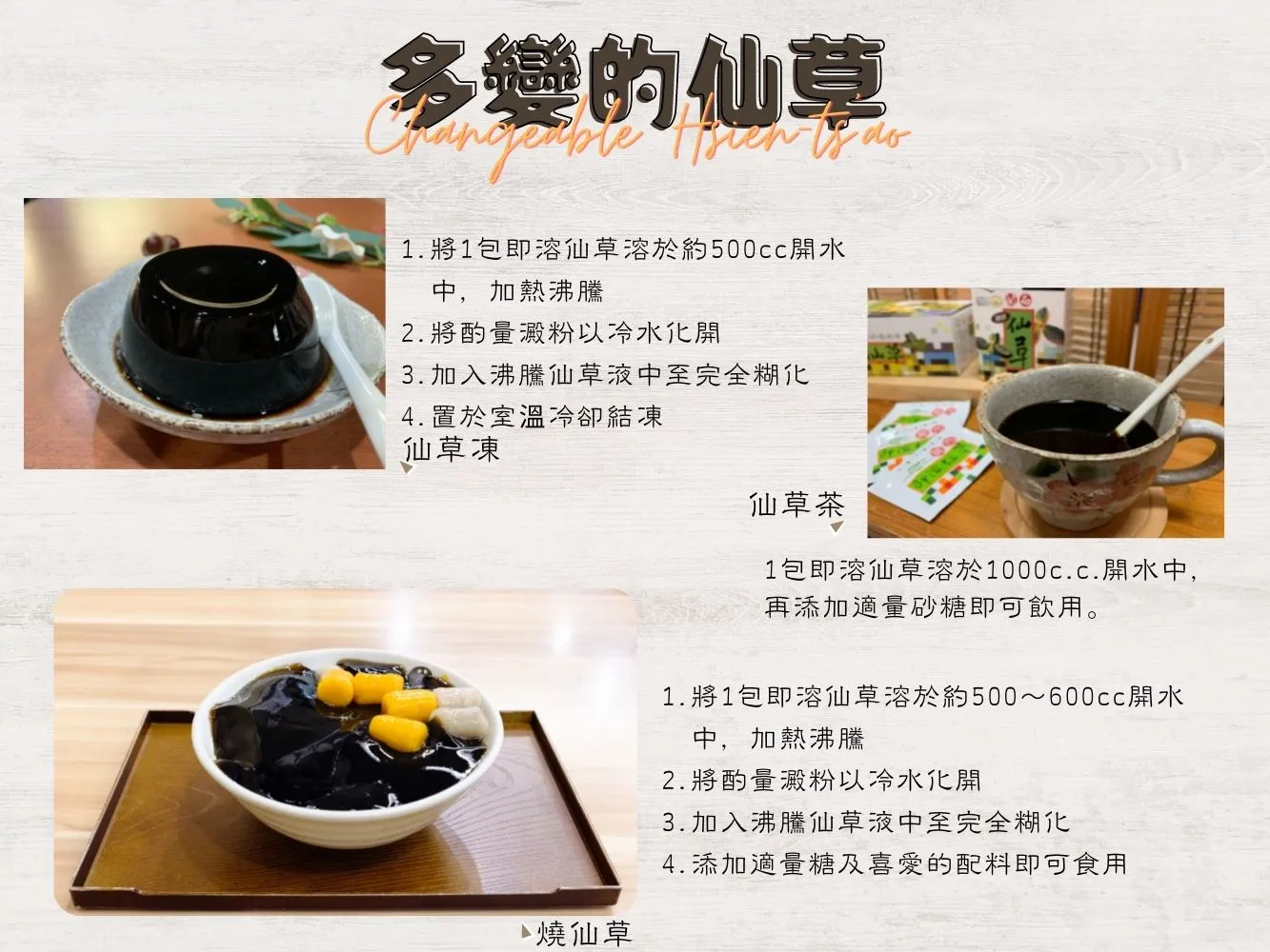 美味芬芳,可變化出仙草茶、仙草凍、仙草冰、仙草雞、仙草排骨等多樣風味。