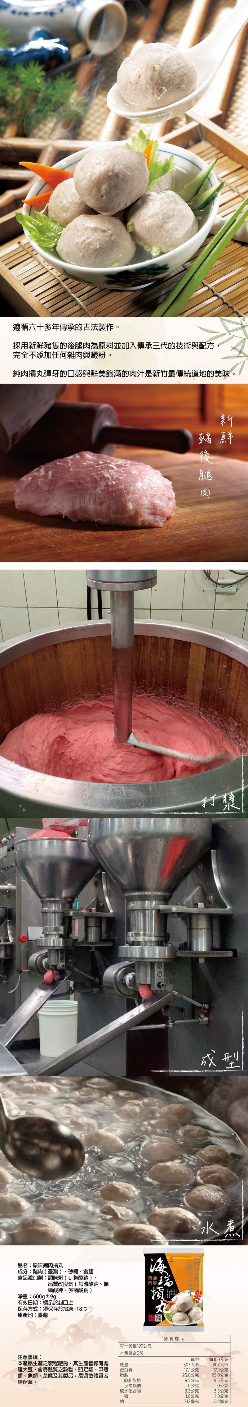 海瑞貢丸 不斷的創新口味、多元化 嚴選100%新鮮健康的「豬後腿肉」為主要原料,搭配當歸、枸杞、香菇、客家福菜、深海烏賊墨汁等養生食材,用百年古法手藝,加上傳承三代的祖傳秘方製作。並以美觀、衛生的自動化包裝與嚴格的品質控管,推出道地養生、 Q脆彈牙的海瑞純肉摃丸、養生摃丸系列產品。 海瑞貢丸製程 在製程方面首先選用合格豬隻後腿肉,將其整型,去除結締組織與筋膜,只取精肉部份,再將精肉初部絞碎以利萃取蛋白質,全程控溫15℃以下,防止肉質老化。接下來就是打漿:此乃摃丸製作精華之所在,師傅要利用豬肉的特性,將其擂撌至粘稠的肉漿。使做好的摃丸又Q又脆,若沒有多年的經驗是做不來的。最後成型水煮:將肉漿擠成一顆顆丸子狀放入熱水中慢慢煮熟即成香Q有彈性的摃丸。 海瑞摃丸之所以能成為新竹摃丸的代名詞,除了堅持用新鮮原料來製作外,在製程上更嚴格把關,加上60年以上的經驗與技術,使消費者能買的安心,吃的放心,成為全省摃丸的領導品牌。遵循七十多年傳承的古法製作,採用最新鮮合格的豬肉及融合古早的風味,彈牙的口感與鮮美飽滿的肉汁是新竹最傳統道地的美味。