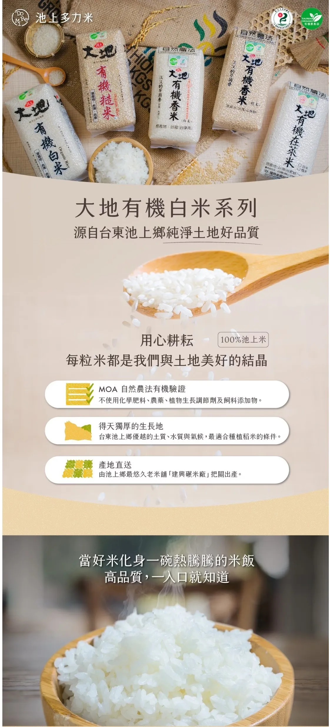 擁有香Q米質的池上米,一直是消費者口中的最愛,日據時代曾經是進貢日本天皇的的御用米。
