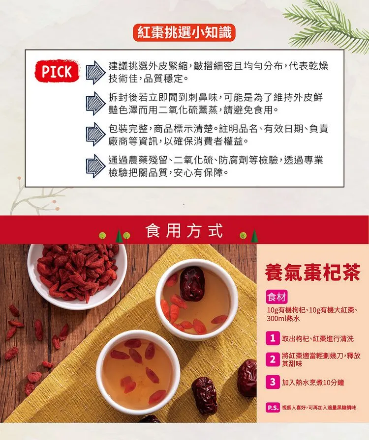 內容物名稱有機紅棗。食品添加物:無。