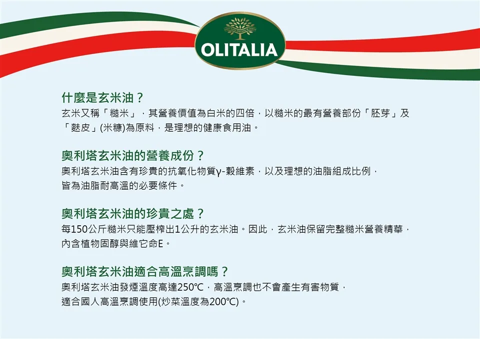 健康食尚新選擇-義大利原裝原罐進口 奧利塔玄米油
