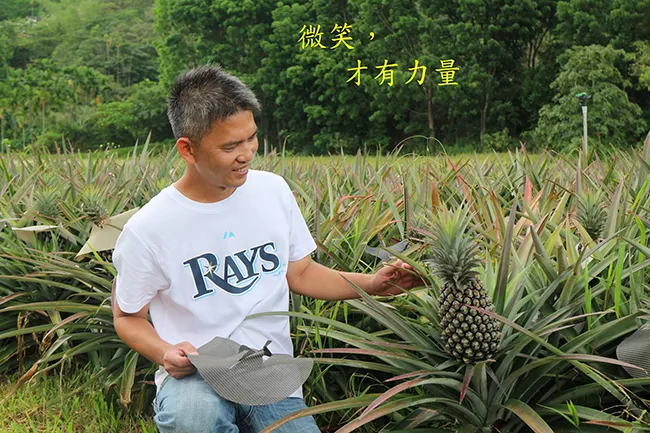 有機金鑽鳳梨特點 田地所在的屏東瑪家鄉,是排灣族的所在,吳大哥和美蓮雖非族人,卻很認真的想把這個年輕人都走光的地方找回文化,甚至將自己的鳳梨產品用排灣族的語言命名。我們在端午節前,聽著美蓮介紹排灣族的粽子「吉拿富」、聽她聊著期待排灣青年回鄉的夢想。我們在現場沒說,但已在心裡告訴自己,不和這樣的人並肩,要和誰同行?目前吳大哥的園區區分為『有機認證』專區與『無農藥』專區。『有機認證』專區因為有機農耕多年、生態恢復平衡健康,現在已經達到連有機肥料、有機防蟲材料都很少使用的狀態。『無農藥』專區,現階段農耕方式為:施以化學肥料、無使用農藥,此區目標為逐步減低化肥施用。居民、學生、排灣族、生物們和這個農場,就像吳大哥這個園子,沒有誰主、誰從,每個人都是不可或缺的主角,有草有鳳梨。