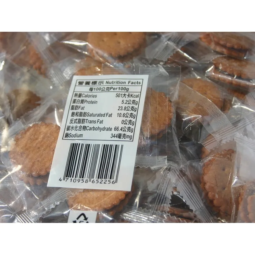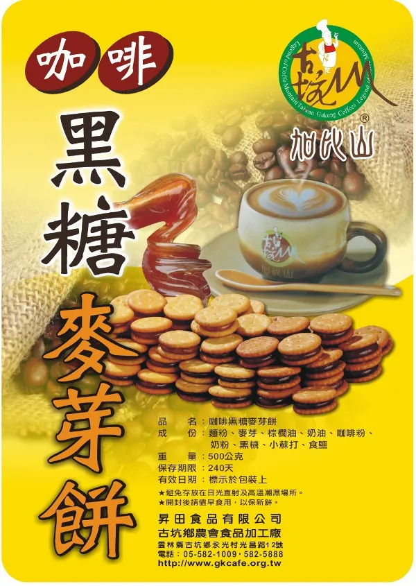 成份 : 麵粉、麥芽、棕櫚油、奶油、咖啡粉、奶粉、黑糖、小蘇打、食鹽 重量 : 500 公克