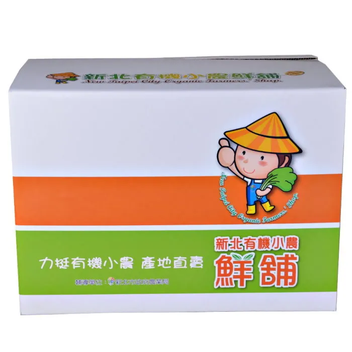 ★交易條件:產地直送/冷凍冷藏無代收貨款服務,外島不配送。 新北有機小農鮮舖 (每週一~五出貨) 為了照顧本市轄下有機小農,農業局推行首波「新北小農鮮舖」,媒合農會與在地有機小農合作,透過「有機驗證」及「新北市政府農業局輔導」雙重把關,增加民眾購買信心,也替有機小農創造多元通路。 首波「新北小農鮮舖」在民眾的支持下創出雙贏的成績,不僅民眾能購得新北市產地直送最新鮮的有機蔬果,在地的有機小農們也因為通路獲得保障,能更專心致志的投入農業生產。 為感謝民眾支持並呼應期待,「新北小農鮮舖」於104年9月再擴及新北市各農會超市。新北有機農業最美麗的風景是小農不懈的精神與呵護民眾健康的心意,透過親身尋訪參與「新北小農鮮舖」的25位有機小農,這份「小農故事」期望藉由字裡行間的力量,傳播他們堅定的有機理念。有機農業捨棄方便有效的農藥及化學肥料,以幾乎赤手空拳的姿態在維護生態與生產蔬果間求平衡,除了投入大量資材外更需耗費心力,因此這些從事有機農業的小農值得我們以行動給予鼓勵。安心選購「新北小農鮮舖」產地直送的新鮮蔬果,讓我們一起吃得健康,力挺在地小農!供應有機蔬菜之農民有:鄭鵬舉(頂田寮有機農場) 1-010-100124、廖博賢 1-004-100144、江英元(林回有機農場) 1-010-100144、陳韋宇(德安居有機農場)1-009-110347、1-009-120280、高淑燕(心一有機香草農園) 1-010-100488、張國良(良好有機農場) 1-010-100136、石門有機農場 1-009-11041、利鑫農場 1-009-110443、蔡佳強(星佳園有機農場) 1-010-100489、林元郁 1-007-110005、內心有機農場 1-004-100337、1-004-100337、周業鑑(周好小農場) 1-007-112042、莊志祥(樂耕有機農場) 1-010-100346、劉翼銓 1-004-100425、1-004-100425、張文棟 1-001-111167、陳坤峯 1-001-111147、芽寶寶有機開發(股)公司 1-006-100687 商品內容:有機葉菜類8包 (A菜、油菜、蘿蔓、菠菜、菊苣、優愛菜、紅蘿蔓、芥蘭菜、地瓜葉、空心菜、小白菜、小松菜、小芥菜、活力菜、青江菜、味美菜、塔菇菜、京水菜、千寶菜、山菠菜、福山萵苣、鹿角萵苣、荷葉白菜、黑葉白菜、葉用蘿蔔、綠寶石萵苣、蔥、韭菜、九層塔) 、有機根莖類3樣(洋蔥、小黃瓜、甜玉米、紅蘿蔔、白蘿蔔、地瓜、栗子南瓜/東森南瓜) 、有機菇類2樣(杏鮑菇、豹紋菇) 、有機芽菜1樣(綠豆芽、紅扁豆芽)