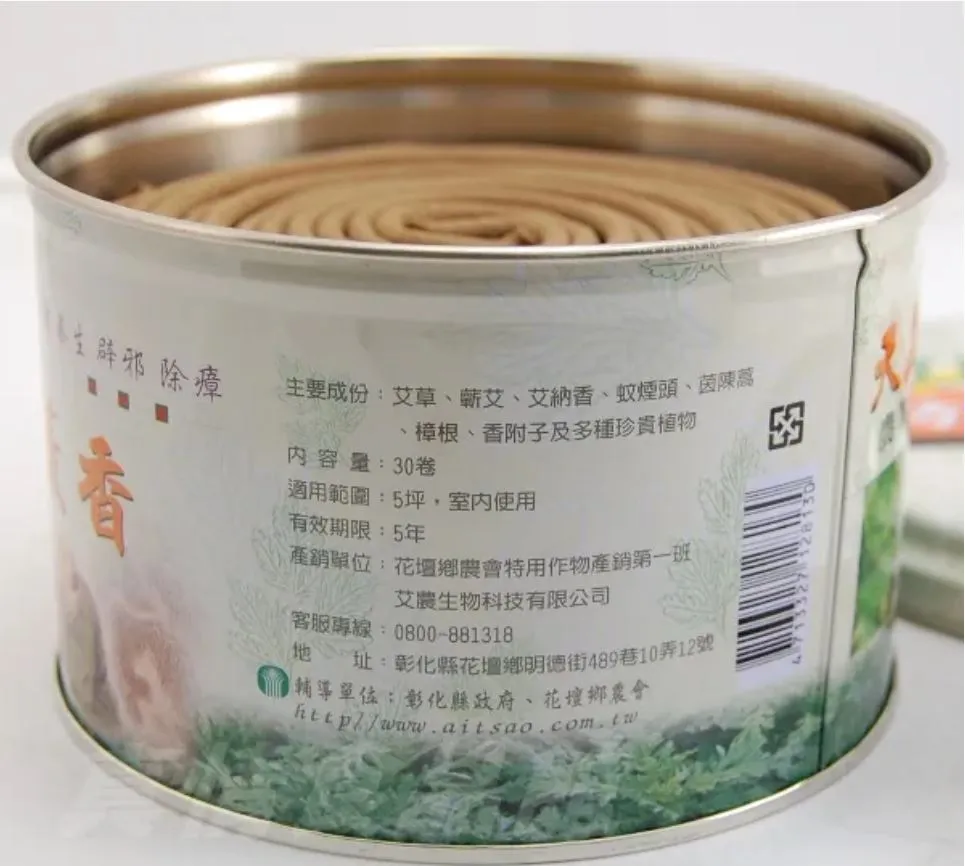 不會對環境造成傷害,古法純天然的蚊香,驅蚊、養生又避邪! 適用範圍:5坪、室內使用,可達12小時。 艾草為菊科艾屬的多年草本植物,生藥名「艾葉」,學名為Artemisia Priceps,源自於希臘的健康守護女神之名而來 。