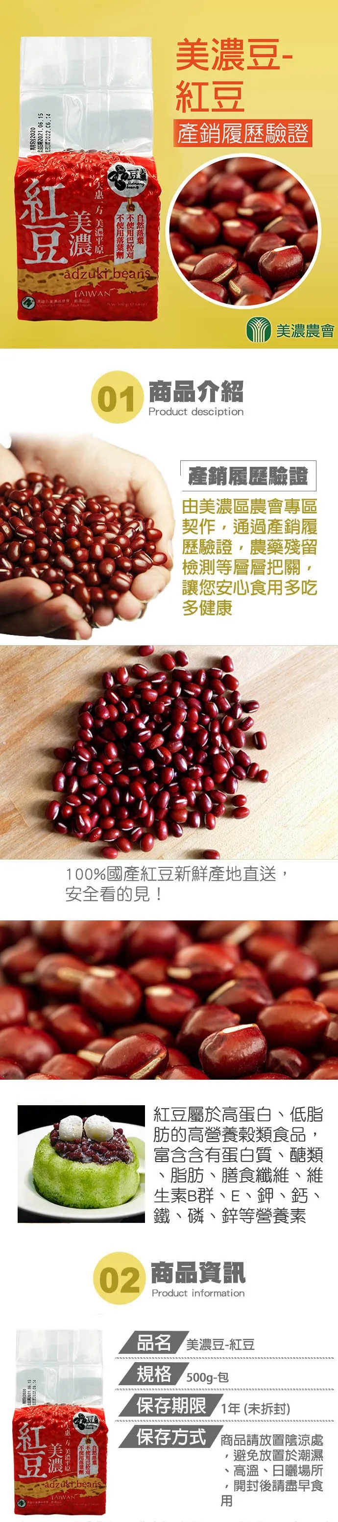 100%國產紅豆~通過產銷履歷驗證!由美濃區農會與農友契作,並自行育苗的本土紅豆,減農藥栽種並且不使用巴拉刈落葉劑,改用鹽水或自然方式取代,同時通過產銷履歷驗證、農藥殘留檢測的層層把關,是可以安心食用的本土紅豆