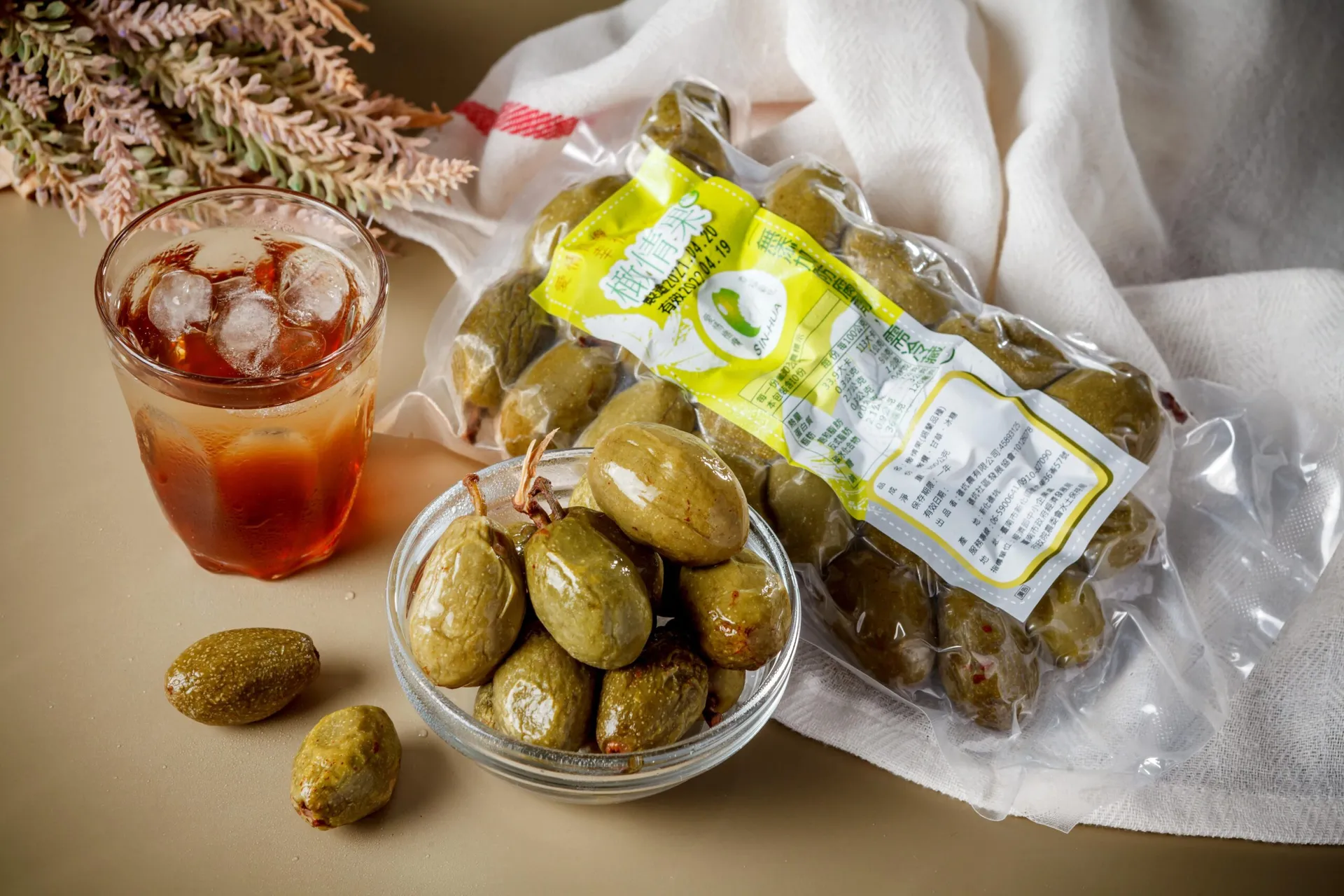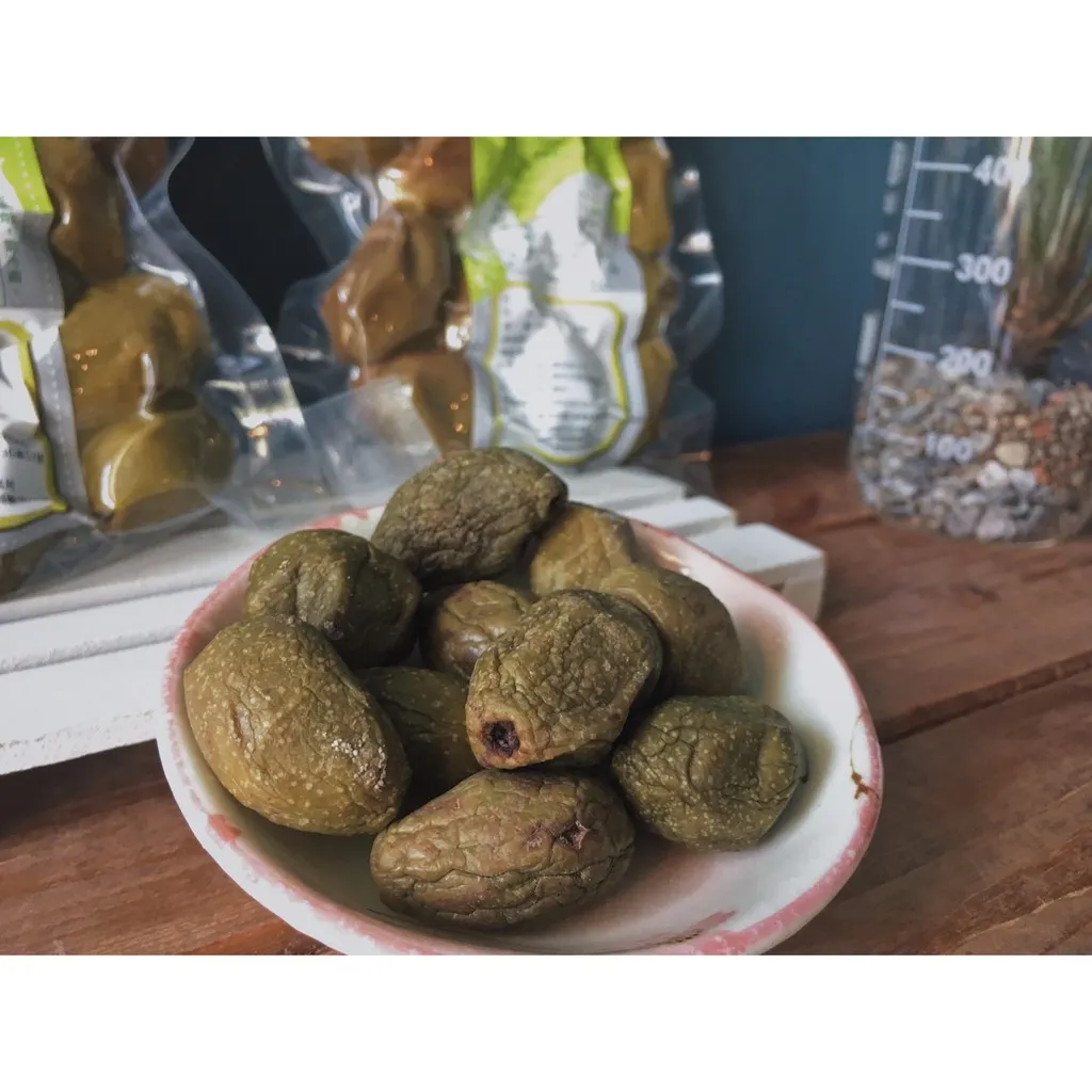 橄欖果果肉有溫度會從盒子裡釋出橄欖油及多 酚,因新鮮果實酸澀無法入口而且產期短,為讓遊客、消費者能隨時可品嘗到橄欖口感及味道,採用簡單去酸去澀而不添加化學原料的製程。