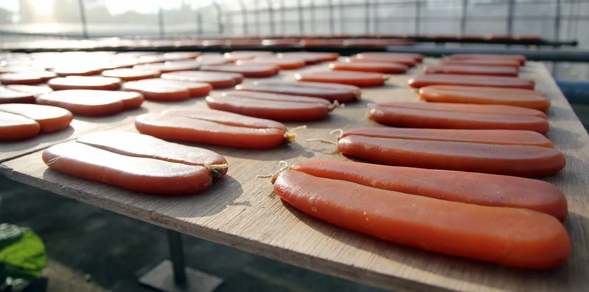 九降風黃金烏魚子得天獨厚由九降風吹拂日曬而成