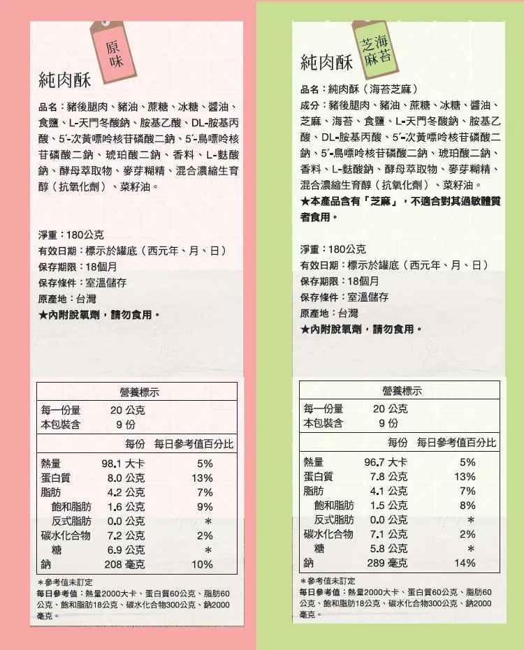 ●農會牌純肉酥,為精選健康豬腳後腿肉製成,肉質鮮美及富彈性,不加豆粉、防腐劑,SGS檢驗合格