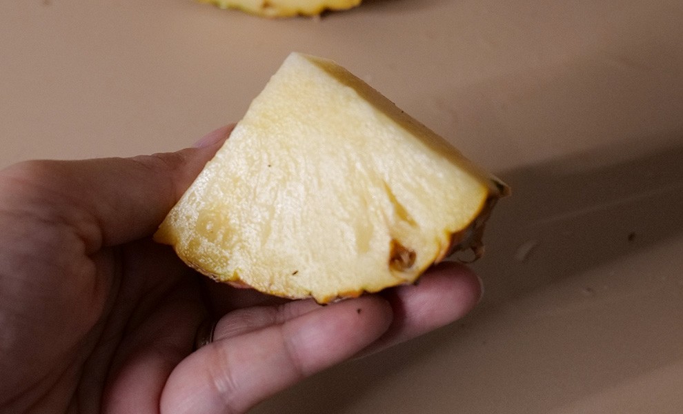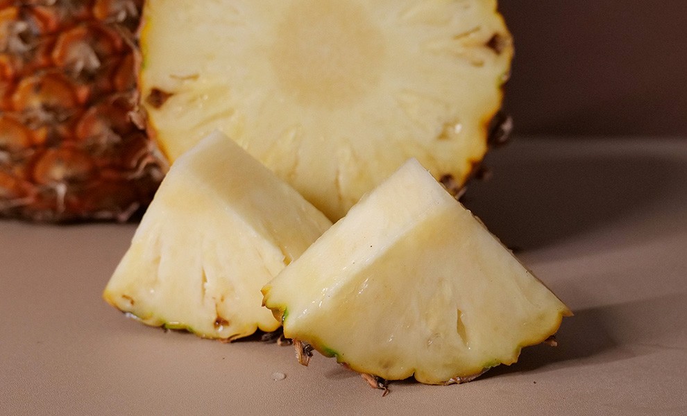 水蜜桃鳳梨是產季短的稀有珍貴鳳梨,以其類似水蜜桃的淡淡香氣、極細緻低纖維的果肉,產量相當稀少。